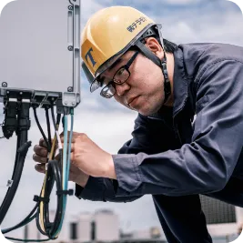 いるんだ。電気通信スタッフは、携帯電話の基地局が新設される時に試験を行ったり、元々ある基地局にトラブルがあれば機器の交換や修繕に向かったり。現場に行って、やってみて仕事を覚えていく感じですね。大切なのは手順を守って確実に作業すること。ひとつのミスで万が一、地域の通信がストップしたら大変ですから。