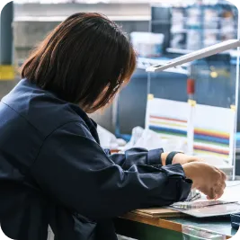 相談しやすい雰囲気と。テラモトには毎日、通信機器の修理依頼が日本各地から舞い込みます。そういったご依頼の受付から修理状況の管理、お客様への返送までの窓口業務を私が担当しています。作業としてはデータ入力や書類作成がメインですね。