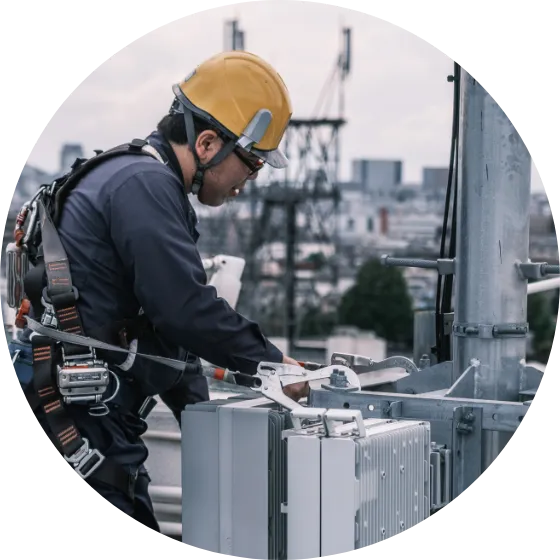 スマホがどこでも通じるのは、「無線基地局」が電波を送ったり、受け取ったりしているから。テラモトの社員は、この「無線基地局」の点検や調整をしています。それだけじゃなく、基地局に配置されている無線機の修理作業や、正常に機能する無線機を日本中に届けるのも、テラモトの仕事。皆さんが毎日スマホを使えるネットワーク環境づくりにも、テラモトは貢献しています。